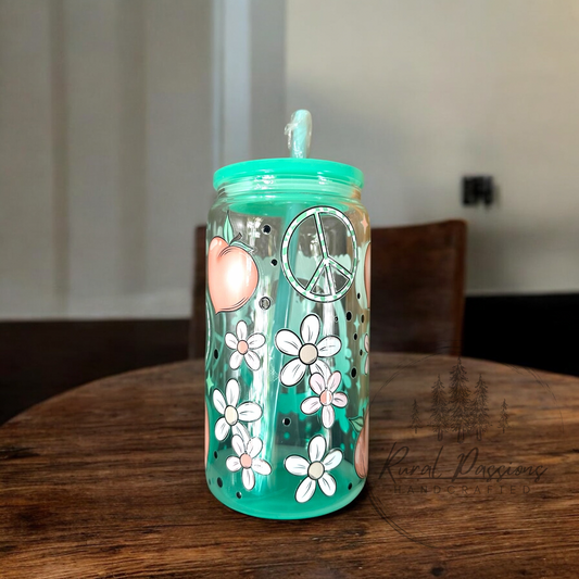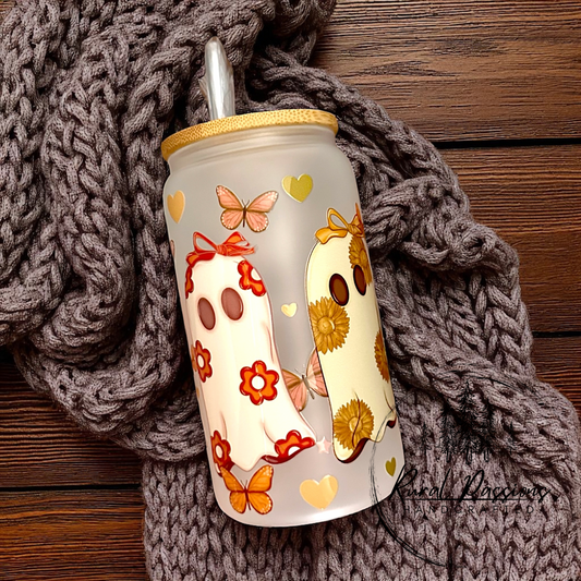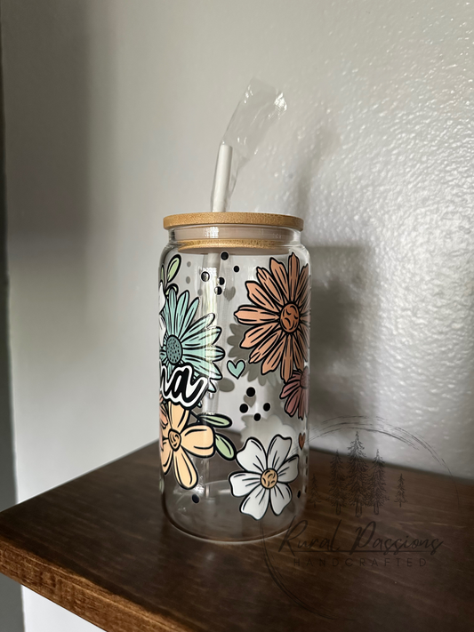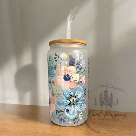 Sold outFloral Frosted Glass Can 16oz