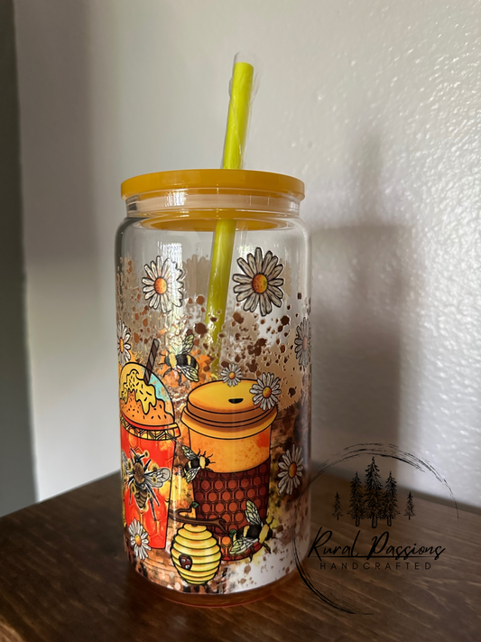 Coffee n Bees 16oz Ombré Glass Can