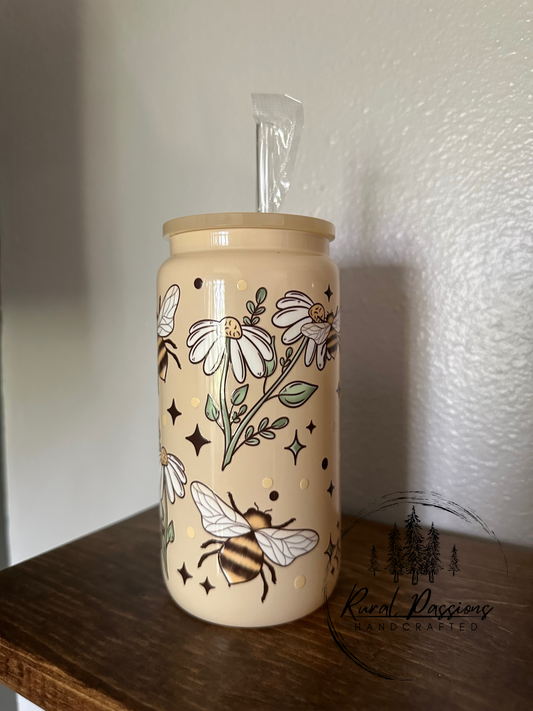 Floral Bees 16oz Glass Can