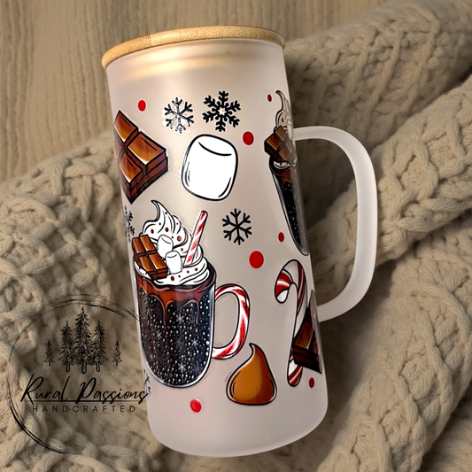 Hot Chocolate 22oz Frosted Handled Glass Tumbler